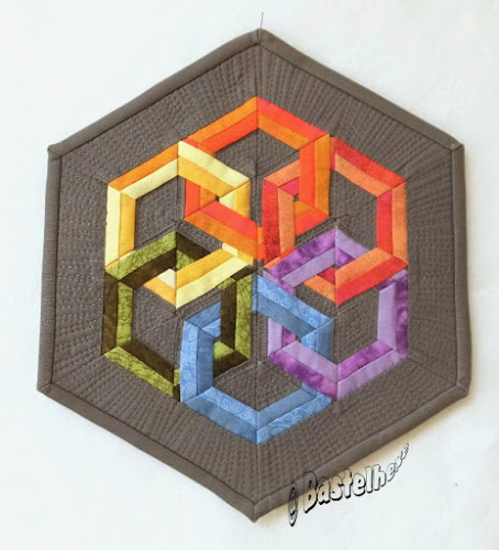 Dreidimensionale Wirkung in Quilts liebe ich sehr. Schon ein Grund, warum mir deine beiden Werke gut gefallen. Aber wenn ich dann erfahre, wie du daran herumgeknobelt hast, um das gleiche Motiv in zwei verschiedenen Techniken zu nähen - Bastelhexe, da kann ich fast nachempfinden, wie es in deinem Kopf gearbeitet hat.