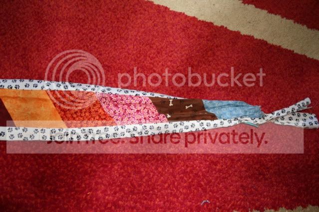 ich habe einmal 2 Teilstücke vertauscht, leider. Ärgert mich wie sau, denn eigenltich sollten die 2 Blumenstoffe nicht nebeneinander sondern Rot, orange, gelb, rosa... naja... als ich es gesehen habe, war es viel zu spät aber ich könnte mir noch immer in den Hintern beissen!