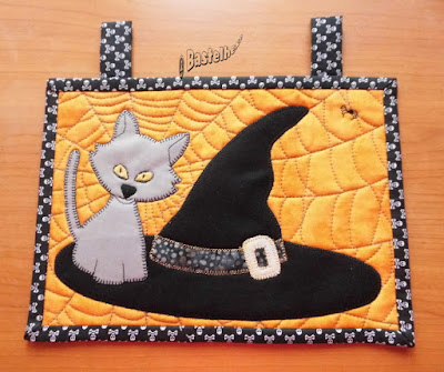 An diesem schönen Halloweenmotiv konnte ich einfach nicht vorbeigehen und mußte mir daraus ein kleines Wandbild in DIN A4-Größe nähen. Die PDF dazu stammt von "KLee 2 Strings". Eigentlich ist die Vorlage für ein Mugrug, aber dies vielleicht mit Kaffee zu verderben wäre mir dann doch zu schade.