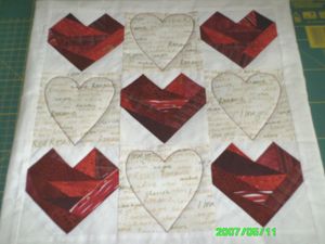 Die Herzen sind in Crazy PP gemacht und die anderen Herzen vorgezeichnet und mit der Maschine genäht.