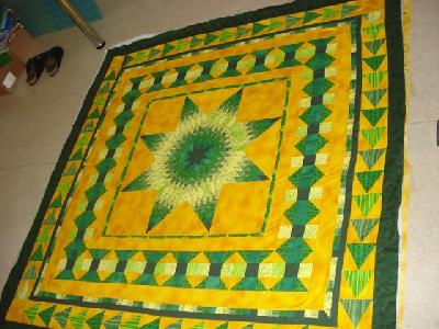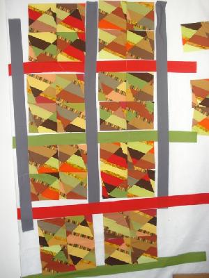 Da ich immer sehr begeisterungsfähig bin, habe ich mich dann im Oktober kurzentschlossen für einen Kurs diesen Sommer angemeldet mit Nancy Crow und kaum war ich angemeldet habe ich endlich bemerkt, was das heisst: nämlich patchen und quilten so viel wie möglich, um beim Kurs auch zu verstehen, um was es geht.... Und nun sitze ich fast täglich an der Nähmaschine, die Finger haben nun langsam auch Hornhaut vom Handquilten (aber ich werde beim nächsten Quilt mal versuchen, es mit der Machine zu tun), die Knien tun heute schmerzen, war am "sandwichen" 2 Std. am Nachmittag, eine Aufgabe, die ich einfach hasse! Aber es muss wohl auch so sein.