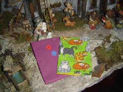 und hervor kommt ein Oktavheft mit einem zauberhaften Katzenumschlag. Das ist eine tolle Idee.