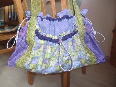 In Natura ist sie lila/flieder/grün und sie passt zu mir! Ich finde, diese Tasche sieht immer wieder anders aus, je nach Stoffzusammenstellung.