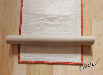 ... schon habe ich eine Rolle, auf die ich Tischläufer etc. schön eng aufrollen und so platzsparend und vor allem ohne Knicke in dem Tischläufer/Quilt im Schrank aufbewahren kann.