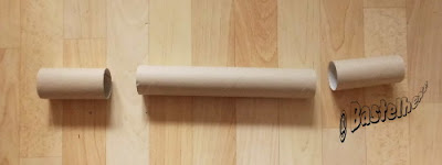 Jetzt nehme ich die leere Küchentuchrolle, stecke jeweils vorn und hinten eine leere Toilettenpapierrolle drauf und ... et voilà ....