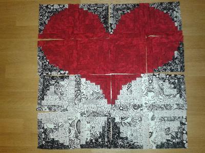 Ich möchte ihr einen schwarz-weiß / weiß-schwarzen Blockhaus-Quilt mit einem roten Herz machen.