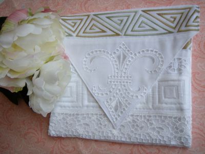 Es sieht wunderschön aus. Ich finde, zu antiken Spitzen passt gut ein (weißes, ganz schmales) Satinbändchen. An dem Kuvert angenäht, durch die Löcher in der Stickerei gezogen und zur Schleife gebunden  _________________ Liebe Grüße - Moni (Flotte Nadel)