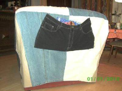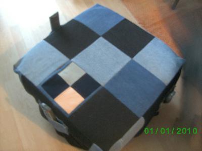 Die Idee von SarahLyn hat mir so gut gefallen, dass ich mal angefangen habe, mein Wohnzimmer etwas aufzumöbeln. Beim Hocker hab ich angefangen. Der Rest wird wohl noch eine Weile dauern, weil ich noch nicht so viele Jeans gesammelt habe. Da muss ich wohl die ganze Verwandtschaft abklappern "grins"