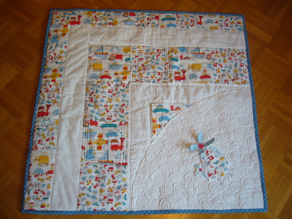 Ich habe endlich mal wieder auch ein neue Krabbeldecke fertig. Ich habe mich an einer Stelle so richtig mit der Maschine ausgetobt Der Rest ist dann eher dezent gequiltet, aber alles mit der Maschine.