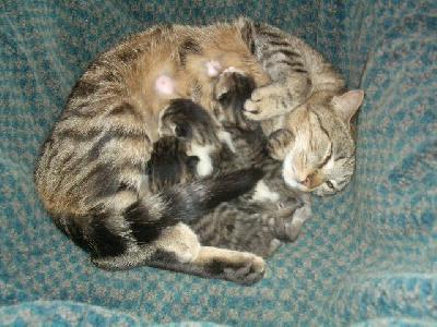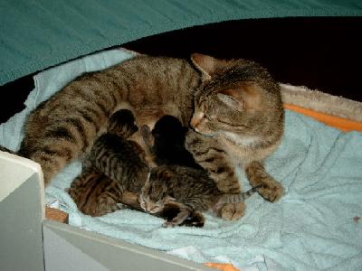Hier unser Mautzi mit ihren Babys.....1 Baby haben wir behalten.