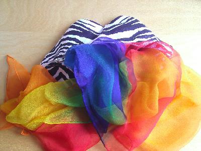 Ein Mund-Täschchen, das einen regenbogenfarbenen Seidenschal ausspuckt:
