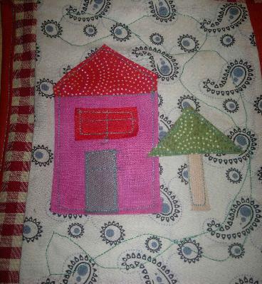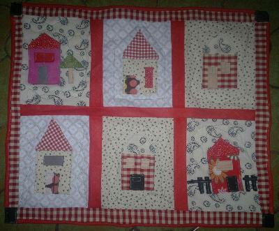 hatte noch etwas Zeit heute und habe einen Miniquilt (54x45 cm) genäht. Naive Häuser gefallen mir in der Malerei auch gut und so habe ich sie als Motiv genommen. Zudem wollte ich mal ein Binding ausprobieren (bevor ich den großen Quilt "versaue"):