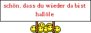 schön wieder von dir zu hören!  _________________ alles wird gut.....  |