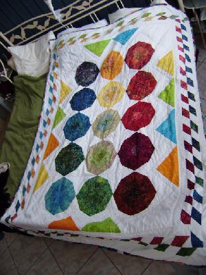 Wow, der sieht toll aus! Ich hätte ja schon keine Geduld für die Spiderwebblöcke und dazu noch die aufwändige Border und das bunte Binding! Hut ab! _________________ Liebe Grüße