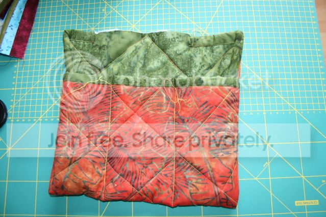 Ausserdem hab ich beim Nähen ja nen Fehler gemacht. Ich habe ERST das Binding gemacht und dann sozusagen die Teile zusammengenäht, dadurch ist nun im einfach liegenden Teil das Binding eingeklappt. Sieht irgendwie auch doof aus, aber alles auftrennen mag ich auch nicht zwingend...nur wenns sein muss.