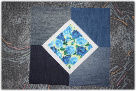 Geschnitten habe ich Quadrate zu 9 1/2" und 3 1/2"