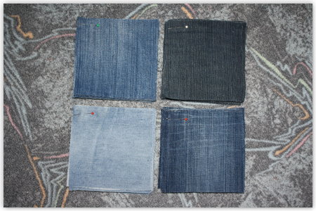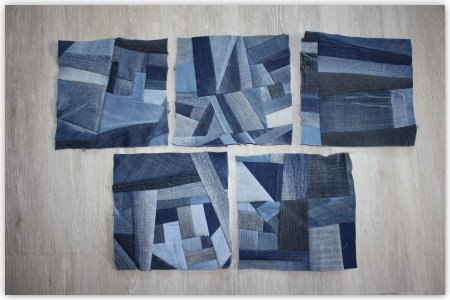 Und dafür habe ich auch schon aus alten Jeans Teilchen zugeschnitten.