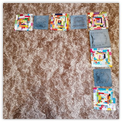 Die Blöcke zwischen den Jeanstaschen sind aus den 1" Bändern.