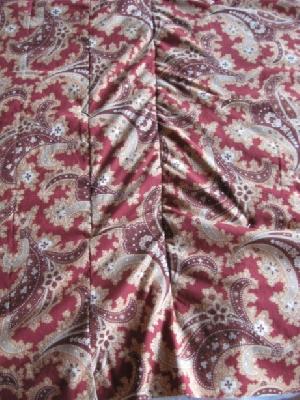 Nun zu diesem Quilt (aus der PW Zeitschrift). Ich habe alles miteinander geheftet und habe in der Naht mittig angefangen zu quilten. Zwei Bahnen habe ich mit der Maschine gequilted. Ich habe einen walking foot benutzt und die Stichlaenge auf 2.5 eingestellt. Wie ihr auf den Bildern sehen koennt stimmt etwas nicht mit der Rueckseit. Was mache ich falsch?