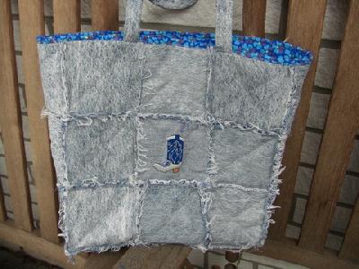 Habe eine Hose von meinem Mann zerschnitten und diese Tasche daraus gemacht.