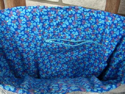 Und als Futter habe ich ein Kaffe Fassett Stoff genommen und eine InnenTasche mit Reissverschluß genäht.
