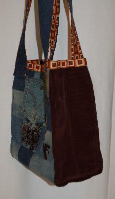 Die Tasche hab ich aus den lieblings Jeans und einer Cordhose von meiner besten Freundin genäht. Sie ist im letzen Jahr "raus gewachsen", die Knöpfe gingen einfach nicht mehr zu. Schweren Herzens wollte sie sich von ihnen trennen, da hatte ich die Idee zur dieser Tasche. Es wäre vor allem um das tolle Muster der einen Jeans schade gewesen.
