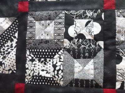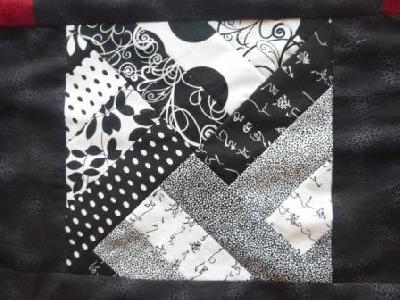 Ich habe aus 2 identischen schwarz-weiss Jelly Rolls dieses Top genäht. Etwas schwarz-rot zur Auflockerung.