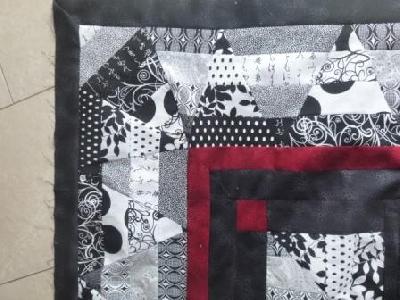 Das Binding wird auch aus dem schwarz-roten Stoff. Übers quilten muss ich noch nachdenken.