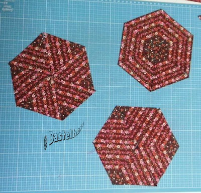 Vogelsbergerinb nähte vor Kurzem einen quadratischen Kaleido-Quilt, daß hat mich auf die Idee gebracht mal mit dem Stoff bzw. zugeschnittenen Dreiecken zu spielen.
