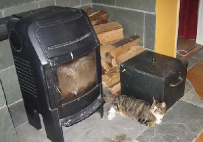 Kitty findet, es ist schon fast zu kalt, um sich nur auf den Teppich vor den Holzofen - unsere Hauptheizquelle - zu legen. Lieber rücken wir etwas näher ran.