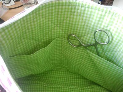 Als Verstärkung habe ich H630 auf den Futterstoff gebügelt und dann noch Inkontinenzlaken von Aldi. Das ganze dann diagonal abgesteppt und es hat richtig Stand. Die Inkontinenzlaken sind relativ steif. Das hab ich dann beim Wenden gemerkt - holla, die Waldfee, hat sich das gewehrt