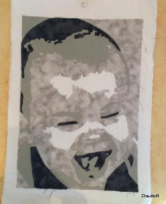 Ich habe nebenbei mal wieder ein Porträt angefangen. Das Bild hat mich gereizt, denn es hat ziemlich wenig Kontraste, aber das Lachen musste ich einfach in Stoff festhalten.