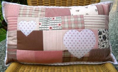 Aus einer Musterkollektion von rosa Stoffen ist dieses Kissen entstanden.