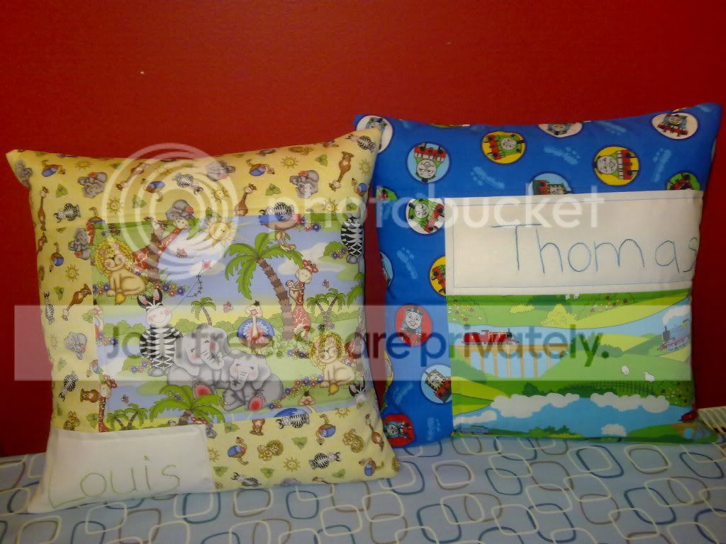 Ich habe gestern diese beiden Kissen fuer unsere Neffen zu Weihnachten genaeht, hoffentlich werden sie gut ankommen bei den beiden... sie sind drei und ein Jahr alt, also perfektes Kuschelkissenalter!