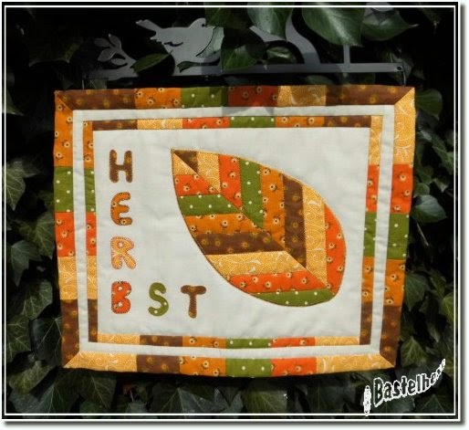 Am Wochenende habe ich aus den bunten Resten von der Herbst-Tischdecke noch ein kleines herbstliches Wandbild genäht.