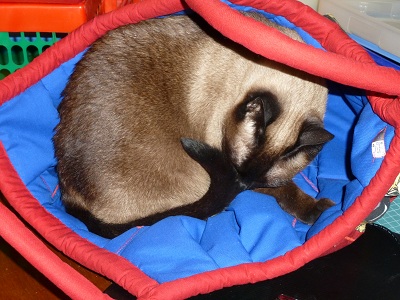 Django bei der Nähkontrolle des fertigen Teiles - Gütesiegel "Cat-proofed" wurde gnädigerweise erteilt