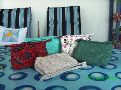 | Die hab ich aus der Lena vom Februar 2009, LH 726. Sind eigentlich mit Flying Geese gearbeitet, aber das war mir zu viel, deshalb hab ich sie ohne Muster genäht (dachte, der Stoff allein wirkt für sich). |