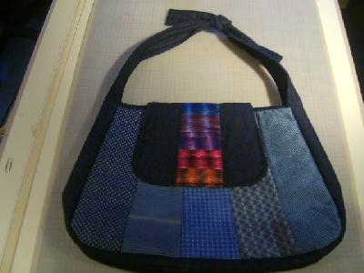 In Anlehnung an eine vor kurzem hier gestellte Frage habe ich aus Krawattenstoffen ( von einer Lieben Forumsdame aus der Schweiz ),eine Tasche genäht.