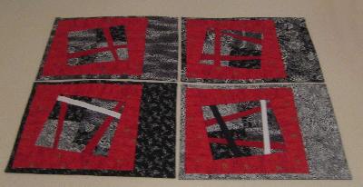 Die anderen Kursteilnehmer nähten aus den 4 Endquadraten einen Quilt - aber da ich immer noch nicht genug Tischsets habe, mussten 4 Tischsets her. |