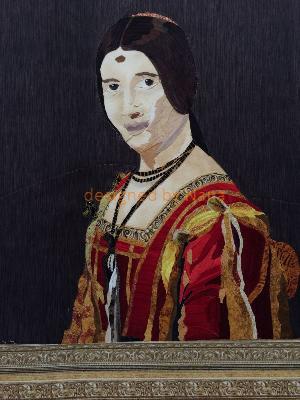 Sie ist noch nicht gesandwicht und gequiltet, aber sie ist fertig als Top. Dies ist nach einem Gemälde von Leonardo da Vinci und besteht aus 567 Einzelteilen.
