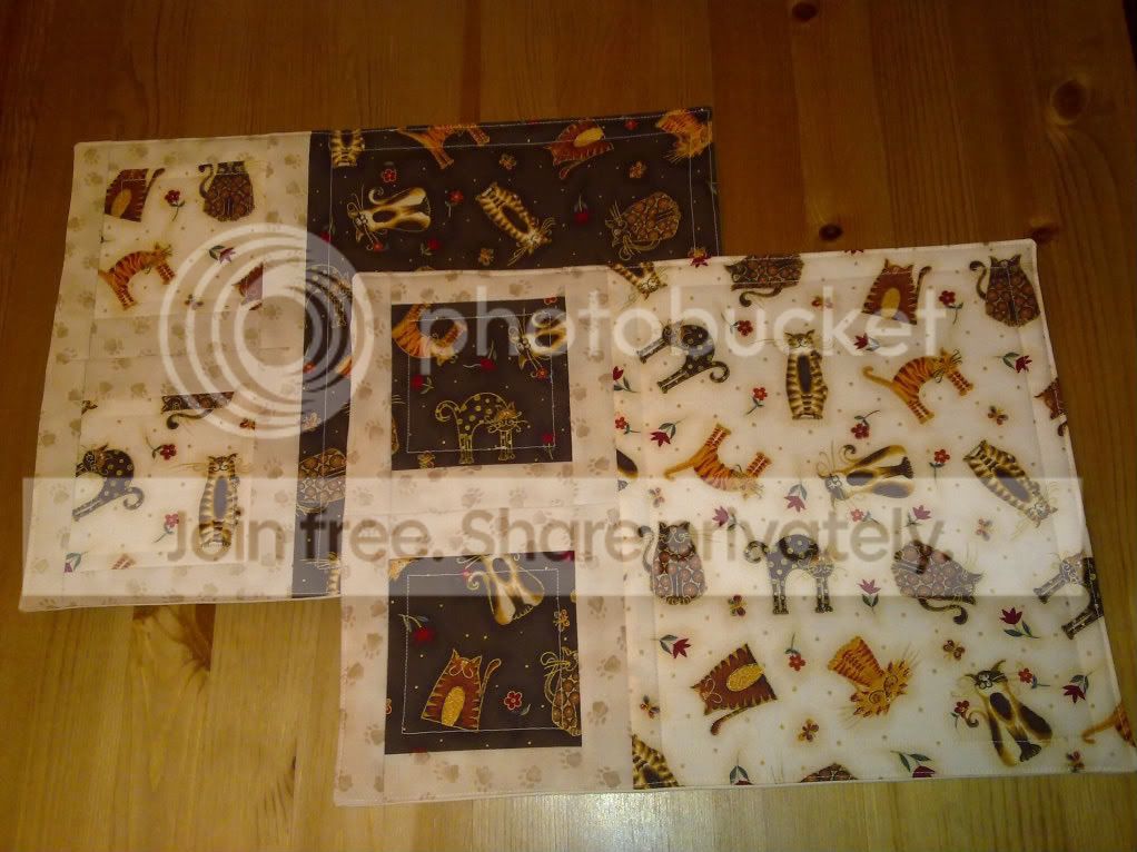 Ich hab mich von den Last Minute Platzdeckchen aus dem Adventskalender inspirieren lassen, und heute nachmittag noch schnell diese beiden fuer meine Schwiegereltern zu Weihnachten gemacht.