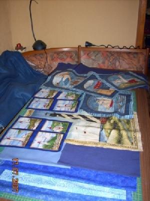 Werdemal wenn ich heute in der Satdt bin, das eine oder andere Stoffgeschäft anlaufen und schauen was sie haben das noch dazupasst. Der WQuilt ist wieder ein typisches Projekt von mir, das sich erst beim arbeiten daran so nach und nach entwickelt. So geh ich auch oft vor wenn ich mir was zum anziehen entwerfe, hab das *grobe Gerüst* im Kopf, aber mehr net.