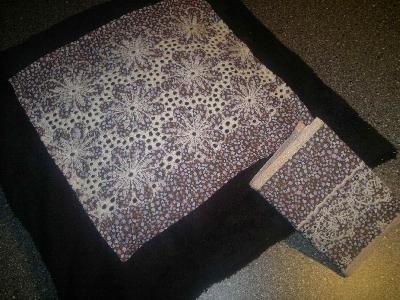 Von einer Freundin bekam ich etwa 4 qm schwarzen Plüsch ("du magst ja schwarz und ich kann ihn nicht gebrauchen!" - Danke Claude) und von meiner Schwiegermutter ein kleines Stückchen Stoff mit Lochstickerei.