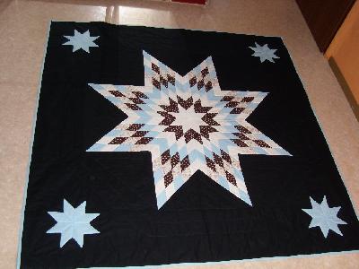Endlich fertig, es ist ein Auftragsquilt 180x180 groß. Ich denke ich werde mich jetzt mal mit Rundungen befassen nachdem ich dieses Jahr vier Lone Stars genäht habe, wobei der letzte auch der Größte war. [ [/img] |