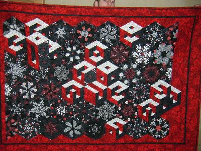 Hier nun mein Kaleidoskop mit 3D Würfeln in rot/schwarz/grau.