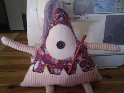 es war ein typisches Mädchenmonster gewünscht, also schnell an die Maschine. Das Monsterchen hat noch ein Geheimfach hinter den Reißzähnen!!