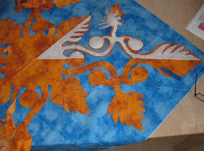 Es ist mein erster Hawaiin und auch mein erste Applikationprojekt. Gestern habe ich viel gestichelt, bis ich an die erste Spitze gekommen bin..... . Ohweia, das ist ja schlimmer als ein 3000 Teile Puzzle. Heute morgen habe ich mir erst einmal diverses Zubehör, Kleber usw. per Internet bestellt.
