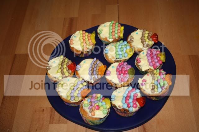 Lena steht zur Zeit voll auf Arielle, die Meerjungfrau.... von daher gab es eine Rainbowcake mit Arielle verzierung.... für den Kindergarten gab es grüne Krümelmonstermuffins und für den Kindergeburtstag gab es Fischleinmuffins.