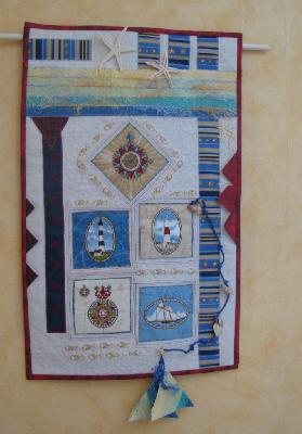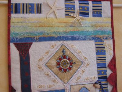 Er ist nicht riesig, 40 x 60 cm... die Querstreifen oben sind ein Teil eines Geschirrhandtuches, ebenso die Fische, sonst habe ich aus der Restekiste und meinem Fundus gearbeitet.