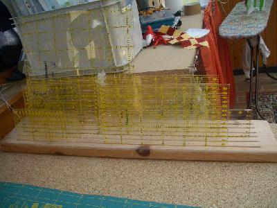 Mein Nähreich ist ja auf der gleichen Etage wie das Spielzimmer meiner Söhne und er hat wohl öfter mitbekommen, das ich ständig meine Lineale gesucht hatte, bzw. weil sie halb unter dem geradezuschneidenden Stoff lagen, am fluchen war. So ein ähnliches Utensil gibt´s ja auch zu kaufen, aber dafür wollte ich nie Geld ausgeben.